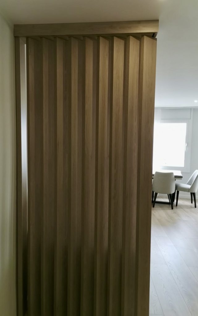 En REMG Constructions apostamos por soluciones elegantes y funcionales. Este separador de listones de madera no solo aporta un toque moderno, sino que también permite dividir los espacios sin perder luminosidad ni amplitud. Una manera sutil de generar privacidad y sofisticación en cualquier ambiente.