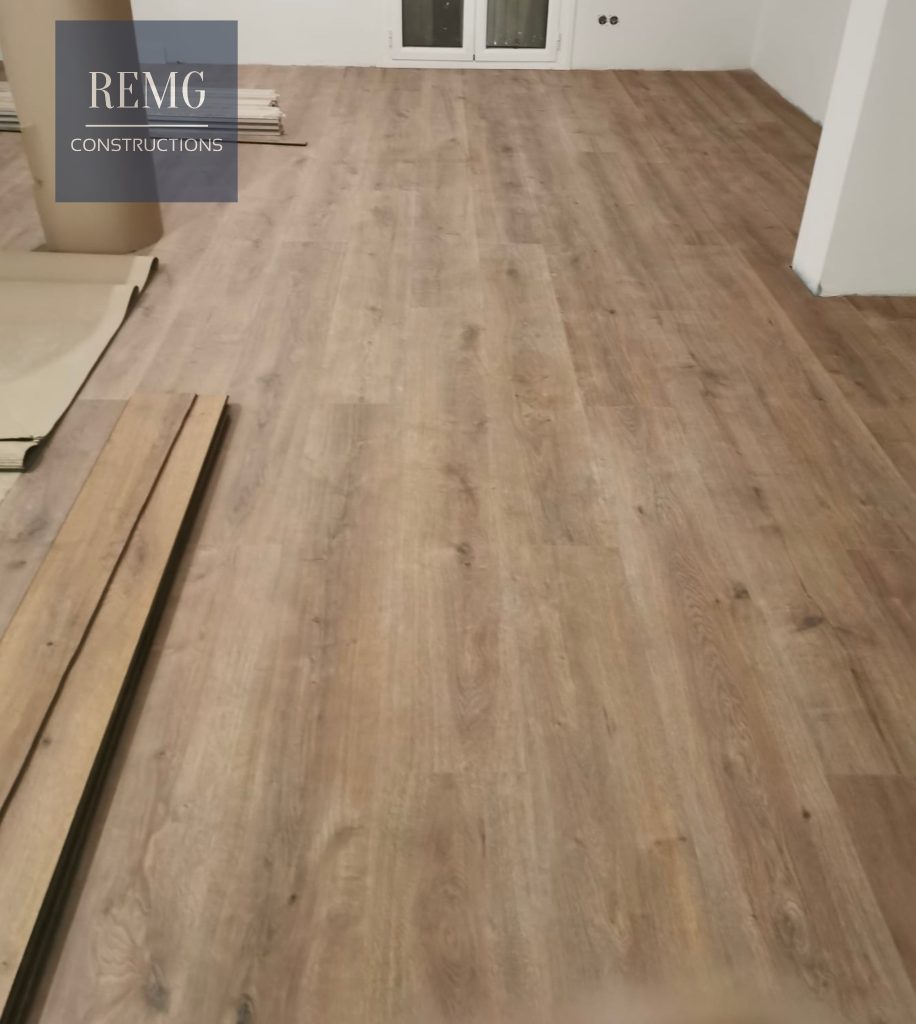 En REMG Constructions estamos en pleno proceso de darle vida a este espacio con un parquet de alta calidad que transformará por completo el ambiente. Aún queda por terminar algunos detalles, pero ya se puede apreciar el cambio que aporta este suelo de madera: una combinación perfecta de calidez y elegancia. 🛠️